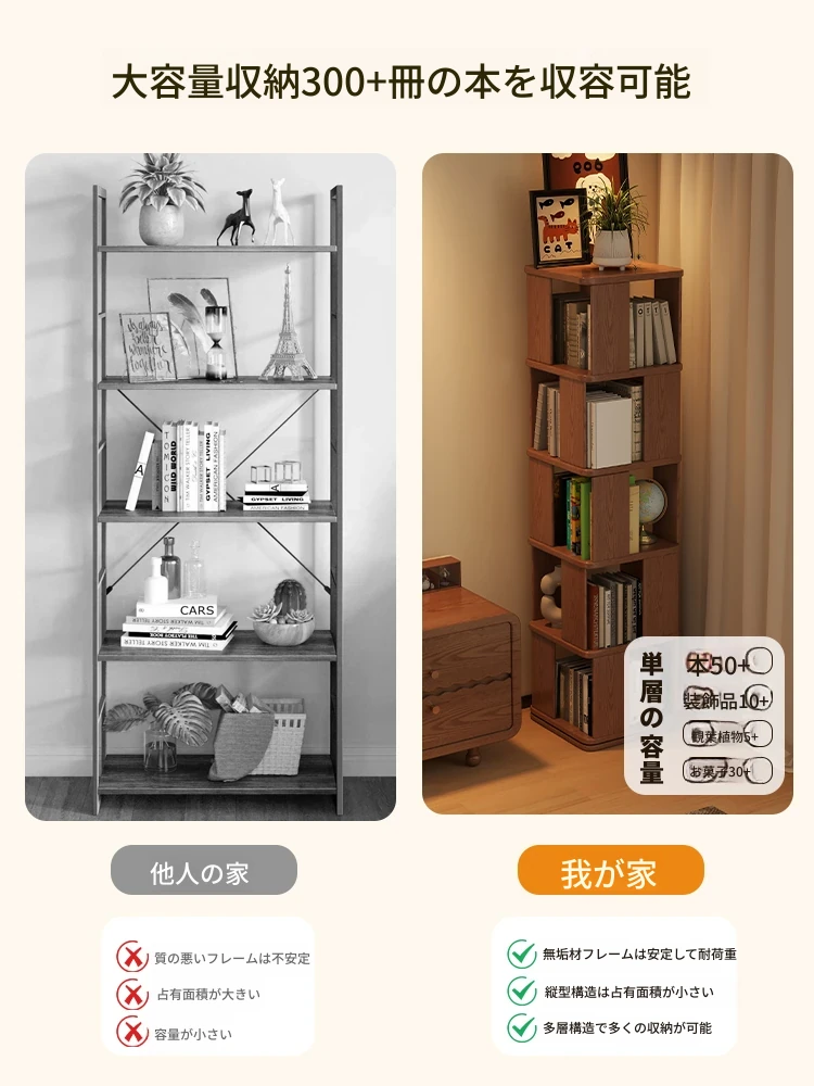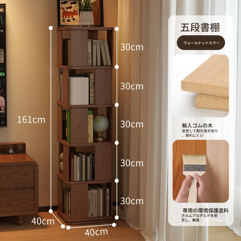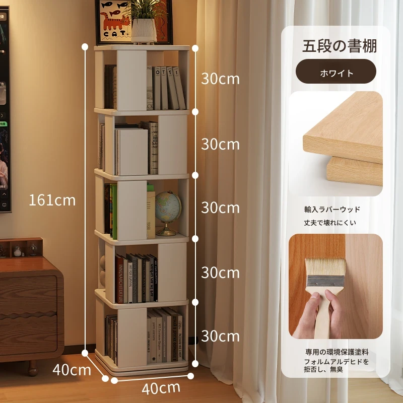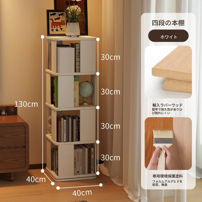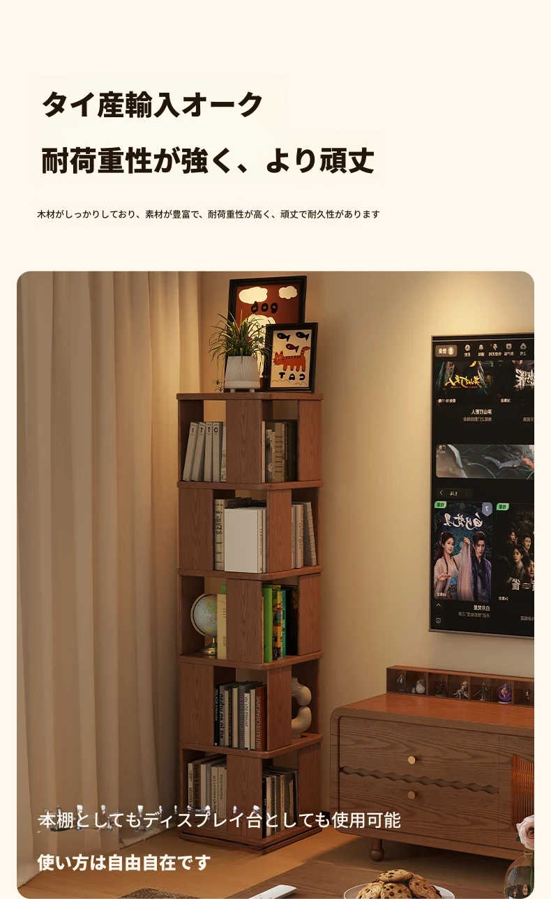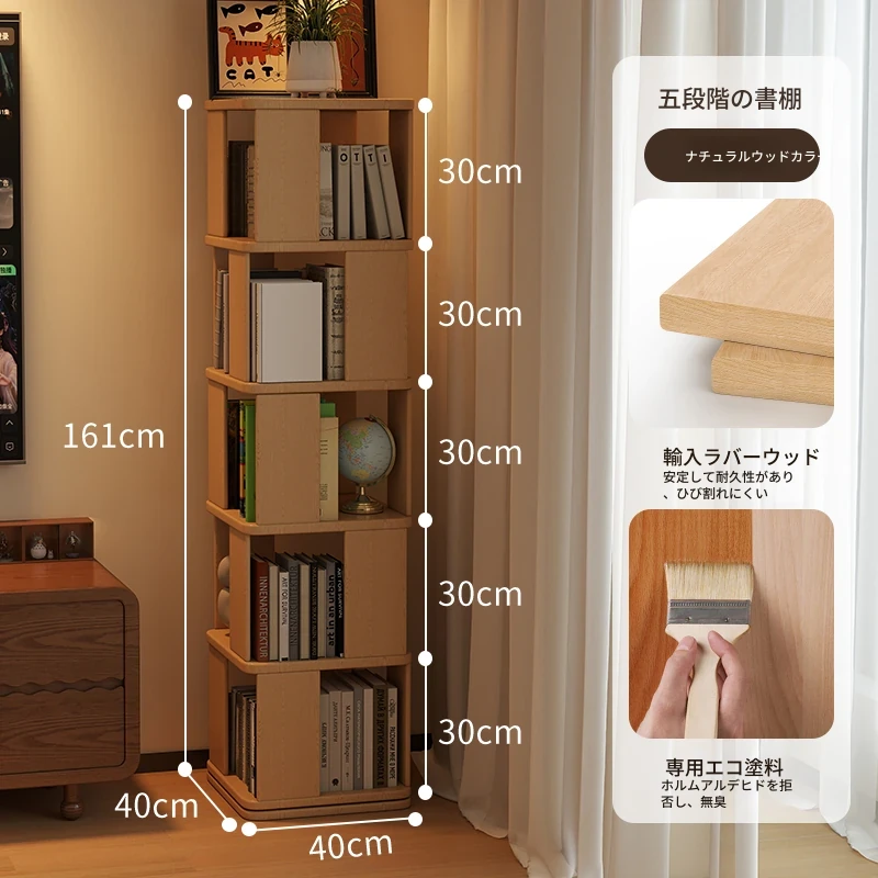 子供向けの実木製回転書棚 - 家庭用の多層リーディングラック!リビングや寝室にぴったりのシンプルな置物ラック。おしゃれで機能的なスペースを演出し、お子様の読書習慣をサポートします!