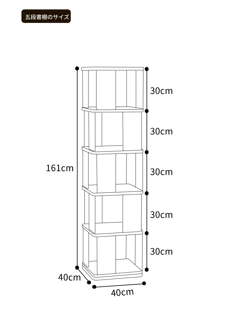 ナチュラルカラー【5段】無垢材回転式