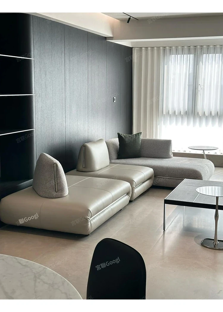 新作!轩蔓ダブルサイドモジュールレザーソファ - 小型住宅向け、自由に組み合わせ可能!移動できる背もたれ付き、リラックスできる青松ソファでお部屋をスタイリッシュに演出!