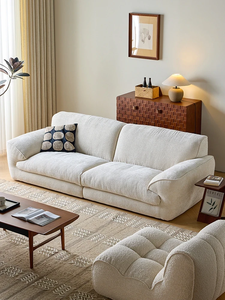クラウドソファー コットンリネン直線デザイン ホワイトクリーム系ファブリック リビングルーム用モジュラー侘び寂びスタイル ダウンクッション付き
