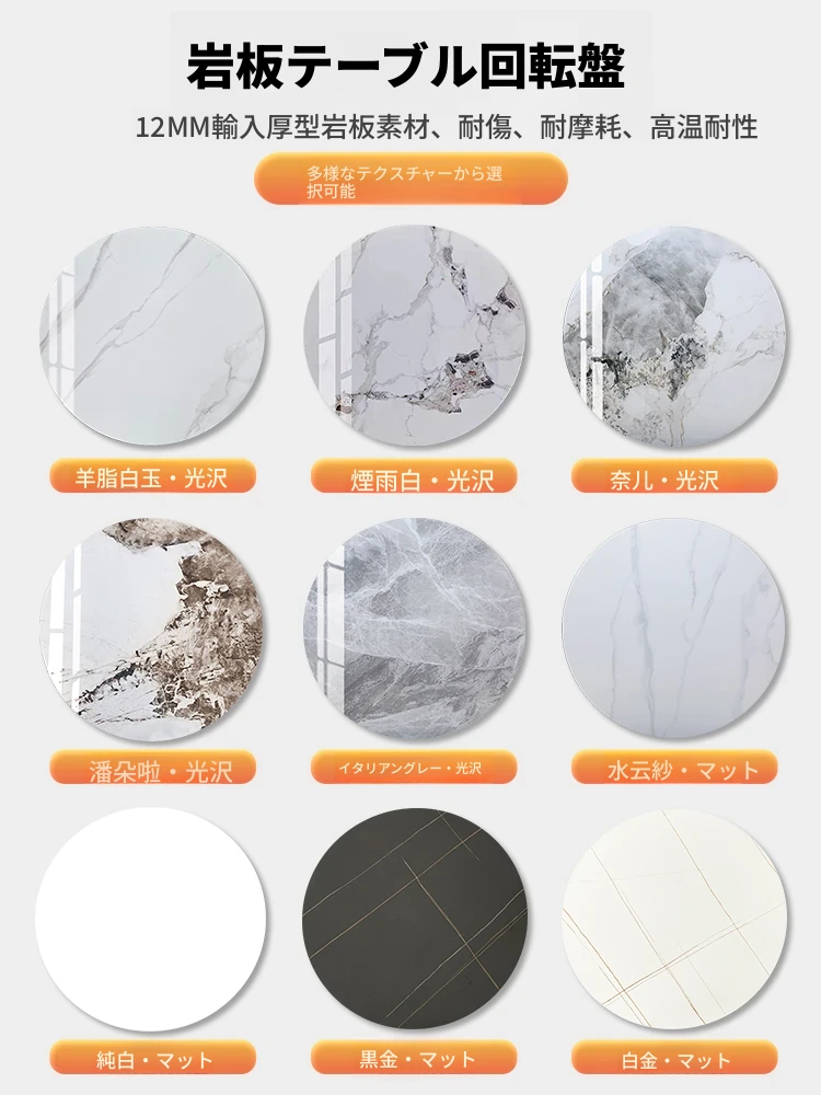 大理石製の電動回転テーブル - 家庭用のスタイリッシュな円卓!優雅なデザインで、食事をもっと楽しく。おしゃれな岩板素材、回転盤で料理を簡単にシェア!