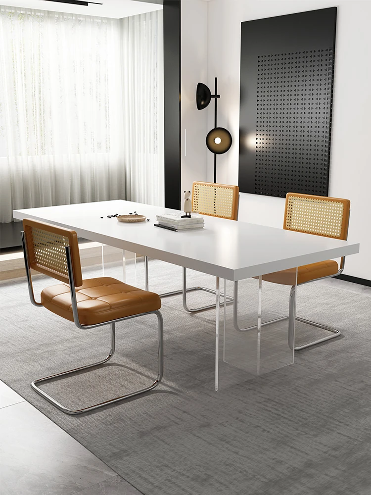 浮遊する岩板のダイニングテーブルセット|小型住宅に最適なモダンでシンプルな長方形デザイン|透明アクリル製、スタイリッシュなアイランドテーブルで、食卓を華やかに演出!