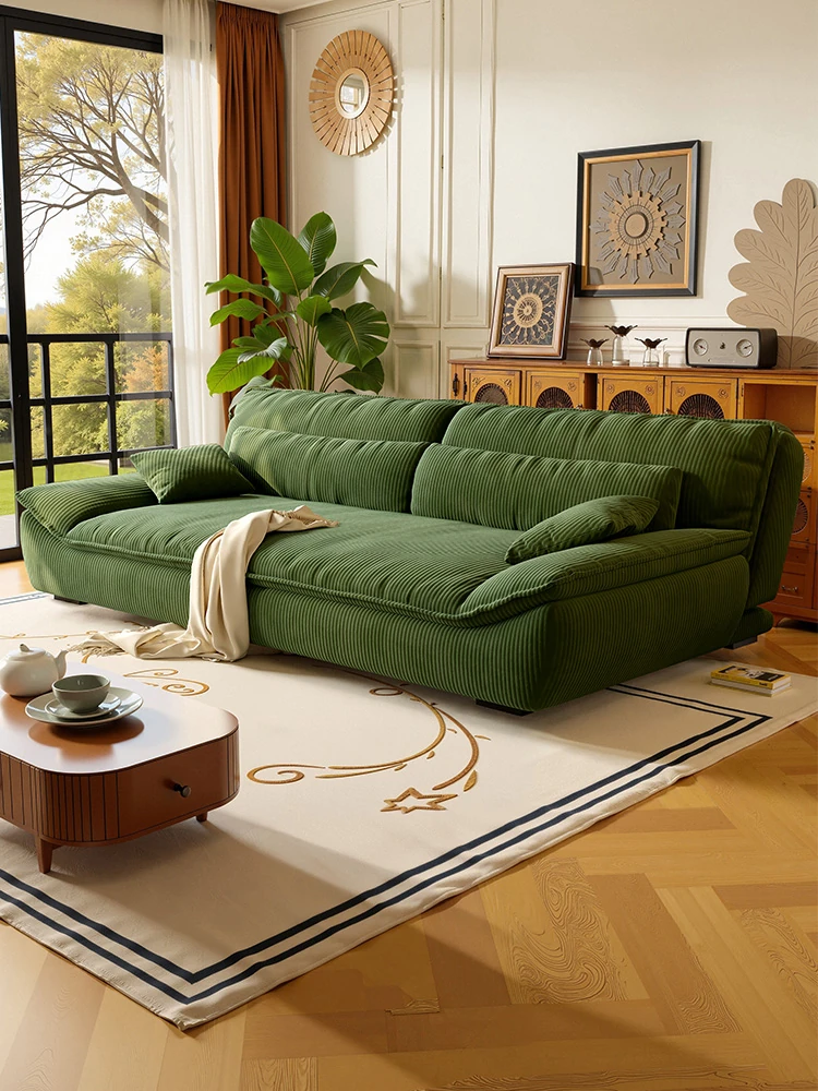 Vintage Corduroy Sailboat Sofa - Compact & Stylish Foldable Sofa Bed for Small Living Rooms & Guesthouses, Perfect for Dual Sitting & Sleeping Use